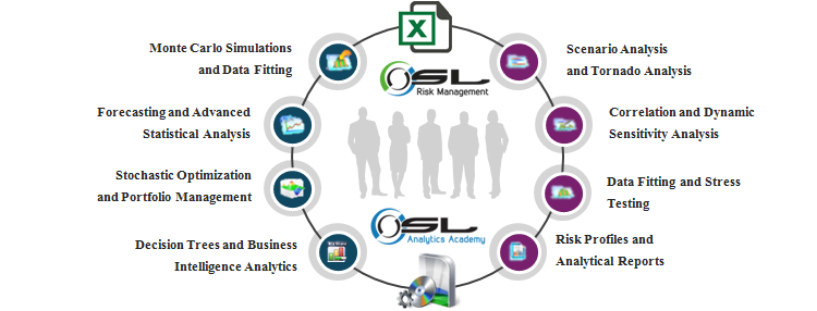 Every OSL product integrates advanced Quantitative Risk Management (QRM) analytics, including Monte Carlo simulation, forecasting, stochastic optimisation, and decision tree modelling. These tools provide the analytical backbone for data-informed risk, strategy, and performance decisions.
